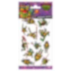 Ett ark med 12 st. tatueringar med roliga motiv från Turtles. En rolig sak att lägga i kalaspåsen till kalaset eller ge bort till en kompis.