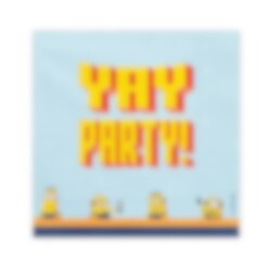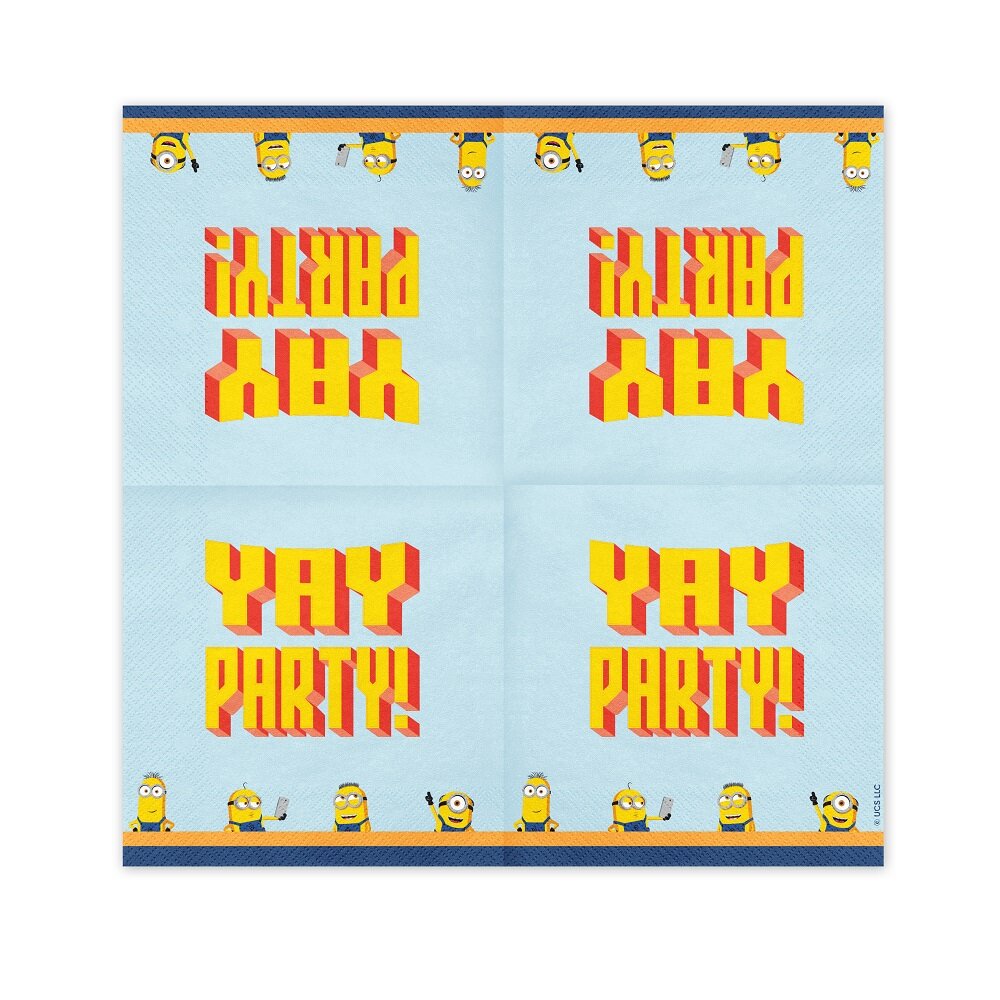 12 st. servetter med färgglatt motiv av Minionerna och texten "Yay Party!", som direkt bidrar till en lekfull och festlig dukning. Perfekta för födelsedagskalaset och ett enkelt sätt att skapa en röd tråd i temat samtidigt som de gör dukningen extra inbjudande.
