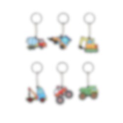 Nyckelring arbetsfordon är en färgglad accessoar med motiv av olika arbetsfordon som grävmaskin, lastbil och traktor. Tillverkad i mjukt gummi med svart baksida och metallring som gör den enkel att fästa på nycklar, ryggsäck eller väska. Perfekt som kalasöverraskning eller present till barn som älskar fordon.