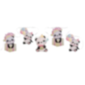 Girlang med motiv av söta pandor. Snygg att hänga upp i rummet när det är dags för kalas. Girlangen är 5 meter lång och det är sammanlagt 10 st. figurer och dessa är 15 x 20 cm stora.