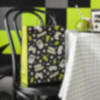 Presentpåse som sticker ut med sin coola design i gaming-tema. Påsen har två handtag, är tillverkad av papper och är 10 x 32 x 24 cm stor.