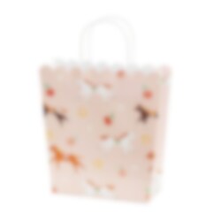 Presentpåse i rosa med vackra hästar i olika färger. Påsen har två handtag, är tillverkad av papper och är 23 x 22 x 8,5 cm stor.