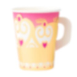 8 st. pappmuggar i rosa ombre färg med detaljer av guldfolierade prinsesskronor. Det medföljer även 8 st. avtagbara mugghållare i guld som föreställer en prinsesskrona. Muggarna är 9 cm höga och rymmer 250 ml.