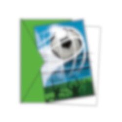 Bjud in till ett fartfyllt fotbollskalas med dessa coola inbjudningskort med sportigt fotbollsmotiv. Perfekta för alla som älskar fotboll och vill samla vännerna till ett roligt firande. I förpackningen ingår även gröna kuvert som gör inbjudningarna extra fina.