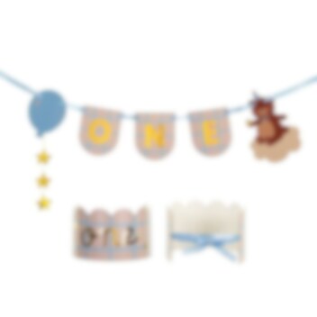 Skapa en festlig stämning på 1-årskalaset med detta underbara dekorationskit som innehåller en girlang med teddybjörnmotiv och en vacker 1-årskrona. En söt och rolig detalj för att fira den stora dagen.