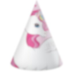 6 st. rosa kalashattar med söta enhörningsmotiv. Roliga att ha till kalas med enhörnings-tema.