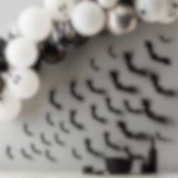 Coola svarta fladdermöss som kommer i tre olika storlekar som skapar effekten av att en svärm släpps ut från ett kusligt spökhus. Fladdermössen kan klistras på de flesta ytor med de medföljande dubbelhäftande klistermärkena.
