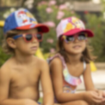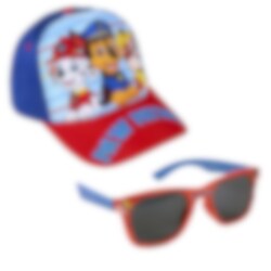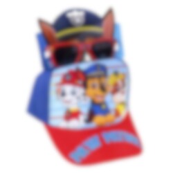 Ett komplett kit med både en tuff blå- och rödfärgad keps och ett par premium solglasögon, båda i barnstorlek. På glasögonen finns motiv av de populära räddningshundarna, Marshall, Chase och Rubble.