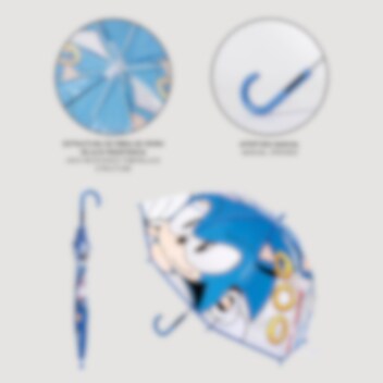 Ett paraply med Sonic-motiv är det perfekta sättet att göra regniga dagar roligare för ditt barn. Paraplyet har en diameter på cirka 71 cm och är tillverkat av högkvalitativt PoE och glasfiber. Det har 8 pinnar och öppnas manuellt. Med en snygg design med Sonic The Hedgehog som motiv kommer detta paraply att bli en favorit bland alla små fans av spel-serien.