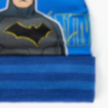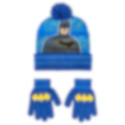 Skydda mot kylan med detta coola Batman-set! Mössan har en tofs upptill och pryds av en tuff Batman-design, medan de blå vantarna har hans ikoniska fladdermuslogga. Ett måste för små superhjältar.