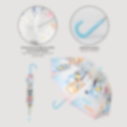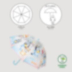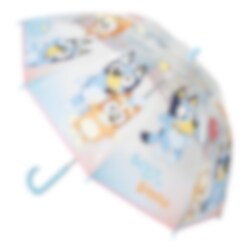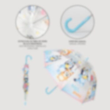 Gör regniga dagar roligare med detta söta barnparaply med Bluey och Bingo! Paraplyet har en diameter på cirka 71 cm och är tillverkat av slitstarkt PoE och glasfiber. Det har 8 pinnar och öppnas manuellt. Den färgglada designen med Bluey och Bingo gör paraplyet till en favorit bland alla små fans av den populära TV-serien.