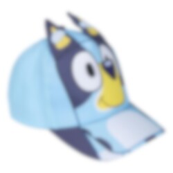 Superfin barnkeps i vackra blå färgnyanser med motiv av hunden Bluey och utstående små öron. Kepsen är tillverkad av 50 % bomull och 50 % polyester. Kepsen har en omkrets på 53 cm och är justerbar baktill, vilket gör att den oftast passar barn i åldern ca 4 till 6 år.