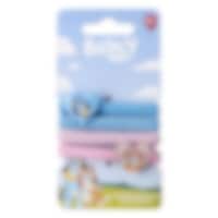 3 st. scrunchies i glada färger med motiv från Bluey! Setet innehåller två scrunchies med tryck, en ljusblå med Bluey och en rosa med Bingo samt en enfärgad ljusrosa scrunchie i satinlook. Tillverkade av 100 % polyester för att vara både mjuka och slitstarka. Perfekta för att hålla håret på plats och samtidigt addera en lekfull stil! Detta är en officiellt licensierad produkt.