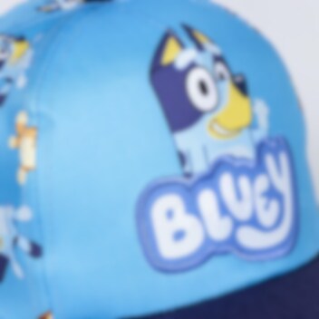 Superfin barnkeps i vackra blå färgnyanser med motiv av hunden Bluey och utstående små öron. Kepsen är tillverkad av 50 % bomull och 50 % polyester. Kepsen har en omkrets på 53 cm och är justerbar baktill, vilket gör att den oftast passar barn i åldern ca 4 till 6 år.