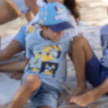 Vacker barnkeps i blå färgnyanser med den söta hunden Bluey på. Kepsen är tillverkad av 100 % polyester. Kepsen har en omkrets på 53 cm och är justerbar baktill, vilket gör att den oftast passar barn i åldern ca 4 till 6 år.