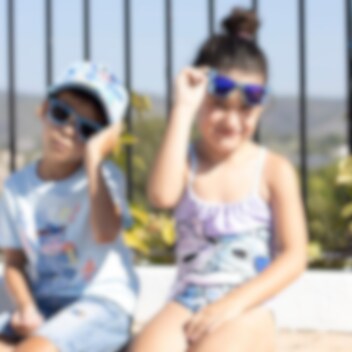 Premium solglasögon till barn med coola detaljer och motiv från Lilo & Stitch. På bågarna runt de tonade glasen finns Stitch på båda sidor.