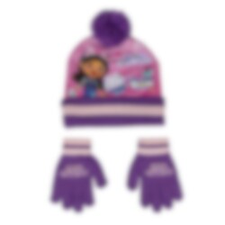 Setet innehåller en mysig mössa och ett par vantar med motiv från den populära serien Gabby's Dollhouse. Perfekt för små Gabby-fans som vill visa upp sina favoritkaraktärer även under vintern! Setet är tillverkat av en blandning av akryl, polyester och elastan.