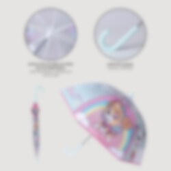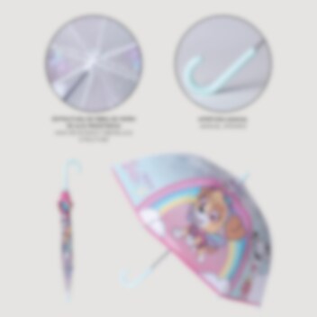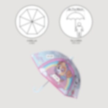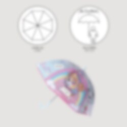 Gör regniga dagar extra roliga med detta söta barnparaply med Skye från Paw Patrol! Paraplyet har en diameter på cirka 71 cm och är tillverkat av slitstarkt PoE och glasfiber. Det har 8 pinnar och öppnas manuellt. Den färgglada designen med Skye och Marshall gör paraplyet till en favorit bland alla små fans av serien.
