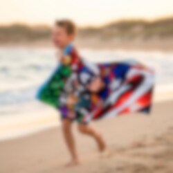 Handduken är tillverkad av 100 % snabbtorkande polyester och är officiellt licensierad. Med sina mått på 70 x 140 cm är den perfekt att svepa in sig i efter ett dopp eller att ligga och sola på. Ett måste för alla Avengers-fans.