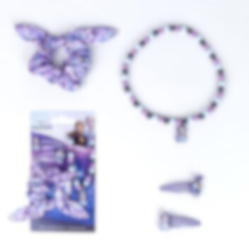 Frost accessoarer i 4-pack erbjuder en underbar möjlighet för alla små fans av Disney Frost att klä upp sig med sina favoritkaraktärer. Varje set innehåller ett par hårspännen i metall, ett halsband och en scrunchie till håret.