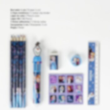 Allt du behöver för skolan i ett enda Frost-set! Den transparenta förvaringsfickan innehåller 12 praktiska och roliga delar med motiv från Disney Frost. Perfekt som skolstartspresent eller till pyssliga barn som vill ha ordning på sina saker med stil.