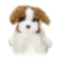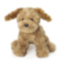 En söt gosedjurshund med lockig och mjuk päls i beige färg. Hunden är 25 cm hög och kan tvättas i 40 grader. Godkänd och CE märkt enligt EN71.