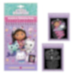 Denna pysselbok med Gabby’s Dollhouse innehåller 6 skrapsidor där barnet använder det medföljande skrapverktyget för att skrapa fram färgglada motiv – och 6 sidor att färglägga själv med tusch eller kritor. En rolig och kreativ aktivitet som passar perfekt för alla små fans av Gabby.