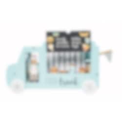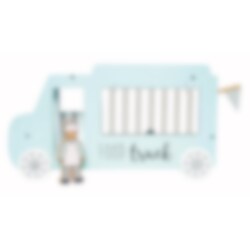 Foodtruck gjord av trä i en fin pastellblå färg som passar perfekt som present till dop - eller födelsedagsbarnet. Med denna kan du bjuda dina vänner på god mat. Vagnen har en meny som visar all den goda maten samt en lucka som kan stängas när det är dags att slå igen för dagen. Det ingår även en kock som lagar maten och kör foodtrucken så att du kan fokusera på att ta beställningar och servera dina gäster. Foodtrucken från Jabadabado är 45x18x24 cm stor.