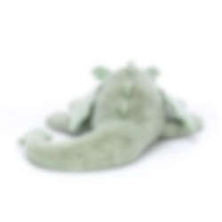 En stor och magnifik liggande drake i blekt salvia-grönt. Med sina många detaljer och mjuka kropp blir denna coola drake den perfekta kompisen att ha med sig i sängen eller myshörnan. Tillverkad i 87% polyester, 10% bomull, 3% rayon och handtvättas vid behov.