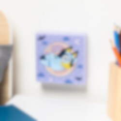 Denna söta Bluey nattlampa är ca 10 x 10 cm stor och har en självhäftande baksida så att du enkelt kan fästa den direkt på väggen. Lampan tänds och släcks automatiskt med hjälp av en inbyggd sensor och erbjuder tre olika ljusstyrkor, så att du kan anpassa belysningen efter behov.