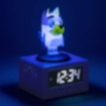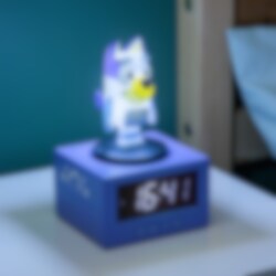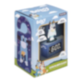 Starta dagen på bästa sätt med denna charmiga Bluey väckarklocka! Den digitala klockan är ca 16 cm hög och har en upplyst Bluey-figur på toppen. Klockan har ett musikaliskt alarm som väcker dig varje morgon, tryck bara på Blueys huvud för att aktivera snoozefunktionen. När du trycker på huvudet tänds dessutom nattljusfunktionen, perfekt för att sprida ett mjukt sken i sovrummet. En både rolig och praktisk detalj för alla Bluey-fans.