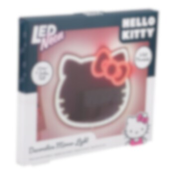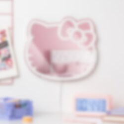Gör rummet extra gulligt med denna charmiga Hello Kitty-vägglampa. Lampan är 23 cm hög och har en spegelyta i form av Hello Kittys ansikte, omgiven av lysande LED-detaljer och den klassiska röda rosetten. En perfekt kombination av dekorativ belysning och praktisk spegel, idealisk för skrivbordet eller sminkhörnan.