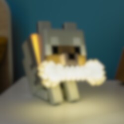 Lys upp rummet med denna charmiga Minecraft Wolf-lampa! Den ikoniska vargen håller ett lysande ben i munnen och blir snabbt en favorit hos alla fans av spelet. Med fem olika färglägen skapar lampan en mysig och lekfull stämning i sovrummet, vid skrivbordet eller i gaminghörnan.