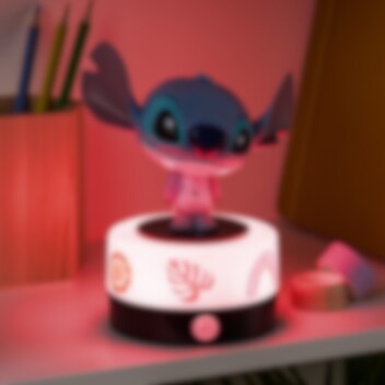 Låt Stitch hålla vakt med både stil och ljud. Denna dekorativa figur föreställer den charmiga karaktären Stitch och fungerar som en Room Guard med inbyggd rörelsesensor. När någon går förbi lyser Stitch upp och spelar ljud, en lekfull kombination av praktisk funktion och inredningsglädje för alla som gillar Lilo & Stitch.