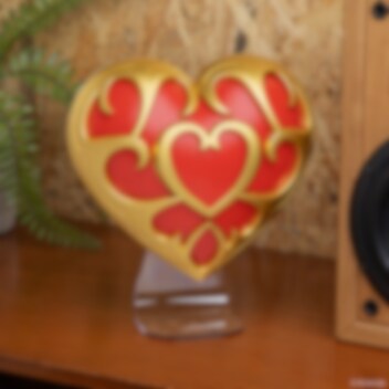Denna 21,6 cm höga lampa är designad med inspiration från de ikoniska röda hjärtbehållarna i spelen. Med sin distinkta 3D-design och en medföljande transparent plastställning blir den en unik inredningsdetalj. Lampan har även ett pulserande ljusläge som skapar en stämningsfull effekt.