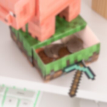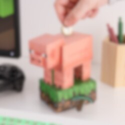Spara pengar på ett kreativt och kul sätt med detta byggkit från Minecraft! Setet innehåller allt du behöver för att bygga ihop en söt gris som samtidigt fungerar som sparbössa – helt utan lim eller sax.