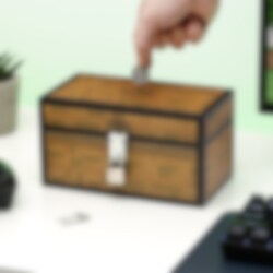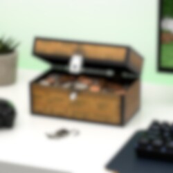 Supersnygg sparbössa som ser ut som en klassisk kista från Minecraft-världen. Perfekt för att förvara mynt och småskatter – med extra säkerhet tack vare det medföljande hänglåset och nycklarna.