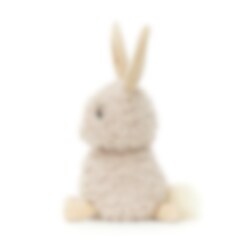 En rund och fluffig liten ljust beige kanin med drömmande ögon, lena små tassar, en elegant fluffig svans och långa lena, spetsade öron. Denna söta lilla kanin med sin rosa nos blir en gullig följeslagare eller myskompis. Handtvättas och häng- eller plantorkas vid behov.
