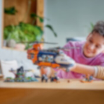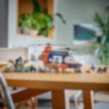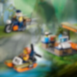 Välkommen till baslägret! Här finns allt du behöver för djungelutforskning, som en motorcykel, en träskbåt och en lasthelikopter med 4 platser, dubbla rotorer och en vinsch för att leverera förnödenheter till avlägsna platser. Hjälp utforskarna att leta efter en sällsynt orkidé och upptäck en gorillafamilj långt inne i den otämjda vildmarken. Dyk in i en värld av djungelberättelser med LEGO® City!