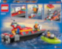 ”Oj!” SPLASH! En motorjolle har fattat eld och föraren har hoppat överbord! Ryck ut med den kraftfulla City Brandräddningsbåt. Plöj genom vågorna och hjälp föraren till säkerhet. Skicka sedan upp den coola jetpacken och använd båtens brandsläckare mot lågorna. När är det dags för nästa utryckning? I LEGO® City är det du som bestämmer!