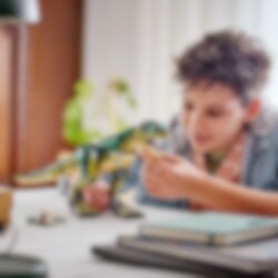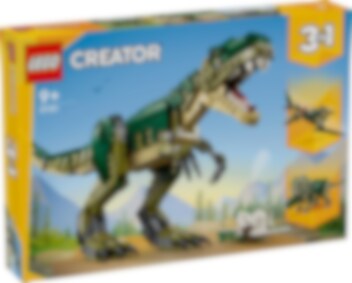 Pojkar och flickor från 9 år kan resa tillbaka i tiden för att iscensätta fantastisk action med dinosaurieleksaken T. rex (31151). Leksaken Tyrannosaurus rex är mycket rörlig, så barn kan placera huvudet, fötterna, svansen, käken, benen, armarna och till och med tårna och hälarna i olika ställningar. T. rex har även ett bo med 2 små dinosaurieägg, och tillsammans blir de en imponerande uppvisningsmodell på en hylla eller ett nattduksbord. Detta LEGO® dinosauriebyggset ger barn en värld av spännande lekmöjligheter med 3 olika leksaksdinosaurier att bygga med samma klossar. De kan skapa en rörlig T. rex, bygga om den till en skräckinjagande Triceratops med 3 horn eller förvandla den till en Pterodactylus med stora rörliga vingar. LEGO Creator 3in1 bygg- och lekset är perfekta födelsedagspresenter eller julklappar till barn, med 3 olika modeller att skapa i varje förpackning. 3-i-1-set erbjuder en rad klossbyggda modeller som ger näring åt barns största passioner, som coola fordon, fantastiska djur och detaljerade stadsmiljöer.