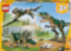 Res tillbaka i tiden för roliga äventyr med 3 fantastiska dinosauriefigurer. Bygg en skräckinjagande T. rex med stora tänder och kraftfull kropp. För mer dinosaurieaction kan du bygga om modellen till en Triceratops med taggig krage och 3 horn, eller en Pterodactylus med stora vingar för att sväva upp i skyn. Valet är ditt med detta fantastiska 3-i-1-set!