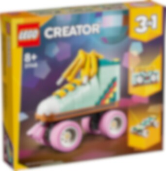 Kreativa barn från 8 år kan resa tillbaka i tiden med det färgglada byggsetet LEGO® Creator Retrorullskridsko (31148). Setet innehåller en LEGO leksaksrullskridsko med 4 rosa, rörliga hjul, rosa broms, tjocka gula skosnören och en uppsättning färgglada delar som barn kan använda för att dekorera skons klack i en egen design. Detta LEGO Creator 3in1 set ger barn 3 olika bygg-och-lek-upplevelser med samma klossar. De kan bygga en leksaksrullskridsko och bygga om den till en färgglad miniskateboard i retrostil med 4 rörliga hjul eller en retrobergsprängare med en liten antenn. Alla 3 modellerna blir iögonfallande uppvisningsföremål när barns lekäventyr är över för dagen. LEGO Creator 3in1 leksaker är perfekta att ge i present till barn, med3 olika modeller att skapa i varje förpackning. Barn kommer att älska att bygga, bygga om och bygga igen. 3-i-1-set håller dem glada i timmar och erbjuder ett utbud av modeller som ger näring åt deras största intressen, som supersnabba fordon, fantasti ska djur och detaljerade stadsmiljöer.