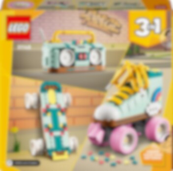 Rulla tillbaka tiden med en rolig och färgglad LEGO® Creator Retrorullskridsko. När du har åkt runt rinken ett tag kan du ta en stanna och bygga om den till en annan ikon inom popkulturen – en retroskateboard med rörliga hjul. Bege dig till skateparken för mer spänning eller gör om den till en supercool retrobergsprängare. Valet är ditt i detta snygga och unika 3-i-1-byggset.