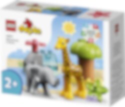 Stig in i en värld av fantasifull lek med LEGO® DUPLO® Afrikas vilda djur (10971) och dela värdefulla utvecklingsmilstolpar med små djurälskare från 2 år. Småbarnsvänliga djur och miljöer Introducera förskolebarn till Afrikas djur med en förtjusande elefantunge och giraffunge. Djurfigurerna, som är lätta att hålla i, har blommor och ett träd att knapra på och en 3-dimensionell, vikbar lekmatta med skogsmark att utforska. Denna mångsidiga safarileksak utvecklar barns självuttryck och finmotorik samtidigt som de njuter av oändliga rollekar med Afrikas sötaste djur. Lekfullt lärande för små barn Alla LEGO DUPLO set är smart utformade med roliga berättelser, klara färger, mångsidiga karaktärer och en mängd detaljer för att ge din lilla byggare en STOR start i livet.