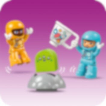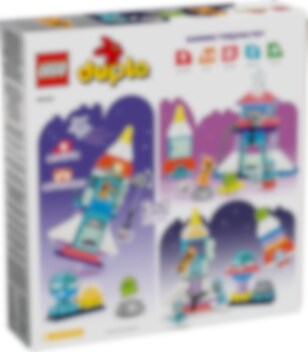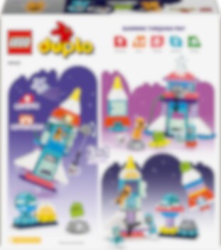 3 ... 2 ... 1 ... lyft mot aktivitetsfyllda lekstunder med den ombyggbara 3-i-1-leksaken Äventyr med rymdfärja (10422). Fantasin når nya höjder när små barn från 3 år leker astronauter som utforskar galaxen i ett leksaksrymdskepp, möter utomjordingar och lär sig om solsystemet. Denna rymdleksak är fullpackad med roliga tillbehör som sätter fart på kreativ lek. Förskolebarn utforskar nya horisonter när de hittar på roliga äventyr i yttre rymden med de 2 LEGO® DUPLO® astronautfigurerna. De kan lära känna en utomjording eller gå på en rymdpromenad för att laga raketen med leksaksskiftnyckel. Lekstunderna känns alltid nya med detta flexibla 3-i-1-byggset, med massor av intressanta klossar och delar som kan byggas om till ytterligare 2 rymdfarkoster, en planetbas eller vad som helst som små barn kan hitta på! Denna roliga, pedagogiska leksak som hjälper förskolebarn att utveckla sin finmotorik har även vridbara kugghjul, en snurrande propeller, upprullningsbar vinsch, gångjärnsförsedda dörrar och en ljuskloss.