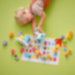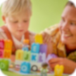 Hjälp ditt förskolebarn att komma igång med ordskapande med den roliga byggleksaken LEGO® DUPLO® Town Alfabetslastbil. Små barn kan sätta fast släpet och lasta det med bokstavsklossar för roliga alfabetslekar. Setet innehåller även en stereodel och en bokkloss för att uppmuntra små barn att sjunga alfabetet och sedan läsa bokstäverna för roliga lekstunder för både förskolebarn och föräldrar.