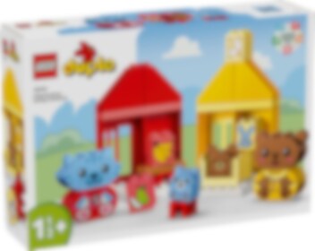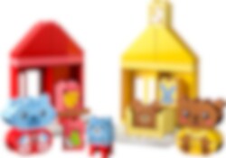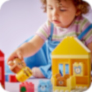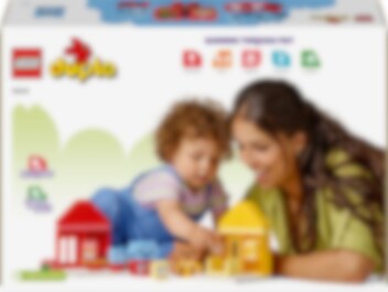 Hjälp små barn att utforska sina känslor med leksaken LEGO® DUPLO® Mina första vardagsrutiner: mat och nattning (10414). Denna roliga, handgripliga leksak för förskolebarn från 18 månader innehåller 4 igenkännbara leksaksdjur. Små barn kan ofta bli känslomässiga kring måltider och nattning, men med denna pedagogiska leksak kan de uttrycka vad de känner under dessa aktiviteter. Setet innehåller 2 söta djurfamiljer, båda med en vuxen och en unge. Kattungen och björnungen har ansiktsklossar med 2 olika uttryck – ett glatt och ett ledset – vilket gör det lättare för små barn som inte lärt sig prata att visa hur de känner. LEGO DUPLO set är ett perfekt sätt att lära sig genom lek. Under de roliga, interaktiva rollekarna kan föräldrar använda leksaksfigurerna för att förklara vikten av rutiner för små barn. Små barn utvecklar även sin finmotorik när de sätter ihop de färgglada klossarna för att bygga de 2 husleksakerna. Varje rutin är färgkodad för att göra byggandet enkelt.