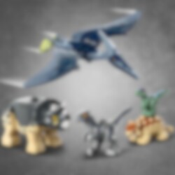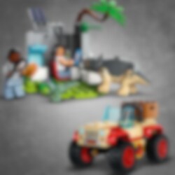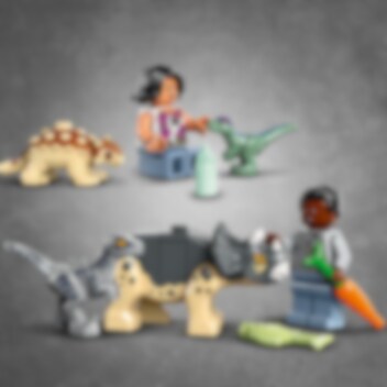 Unga fans från 4 år kan ta hand om och leka med dinosaurieungar medan de lär sig bygga med setet LEGO® Jurassic World Räddningscenter för dinosaurieungar (76963). Setet innehåller ett terrängfordon och ett forskningsområde med en grottvägg, båda med startklossar, plus en matplats, 2 minifigurer och dinosauriefigurer i form av en ankylosarus-, en triceratops- och en velociraptorunge, en mindre velociraptor och en vuxen pteranodon så att leken snabbt kommer igång. Denna LEGO dinosaurieleksak innehåller bildinstruktioner för barn som precis börjar lära sig läsa. För ännu mer digitalt skoj har appen LEGO Builder intuitiva verktyg för att zooma och rotera som låter flickor och pojkar se sin modell medan de bygger. LEGO Jurassic World 4+ set introducerar små barn till sina favoritkaraktärer från film och tv och är roliga LEGO presentset med dinosaurier. De innehåller speciellt utformade startklossar så att även nybörjare kan skapa fordon, byggnader och annat med bara lite hjälp från ett äldre syskon eller en vuxen.