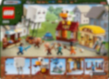 Piglins attackerar byn från sin gastballong! De skjuter iväg en skiva mot fontänen på det stora torget. Du kommer att behöva alla dina Minecraft® färdigheter och hjälp från en järngolem för att rädda resten av byn – däribland Steves restaurang medfriterad kyckling och tillverkningshydda!